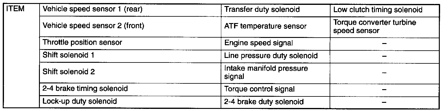 A: FUNCTIONThe on-board diagnostics system is capable of detecting any trouble which has occurred in any of the following input and output signal systems.