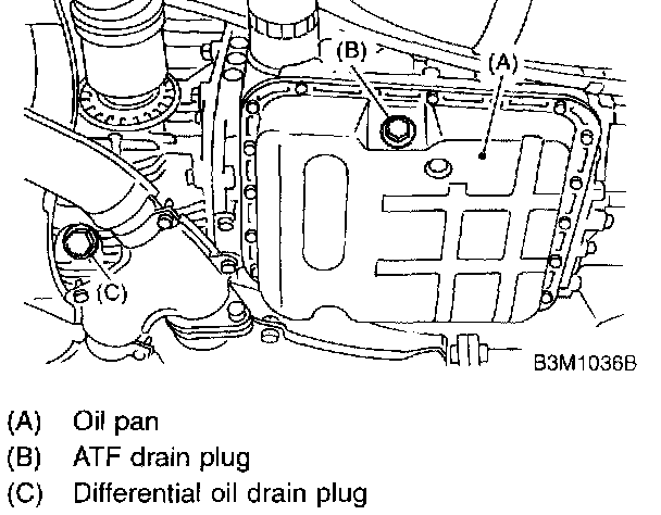 14. Drain ATF to remove ATF drain plug. (AT vehicles)