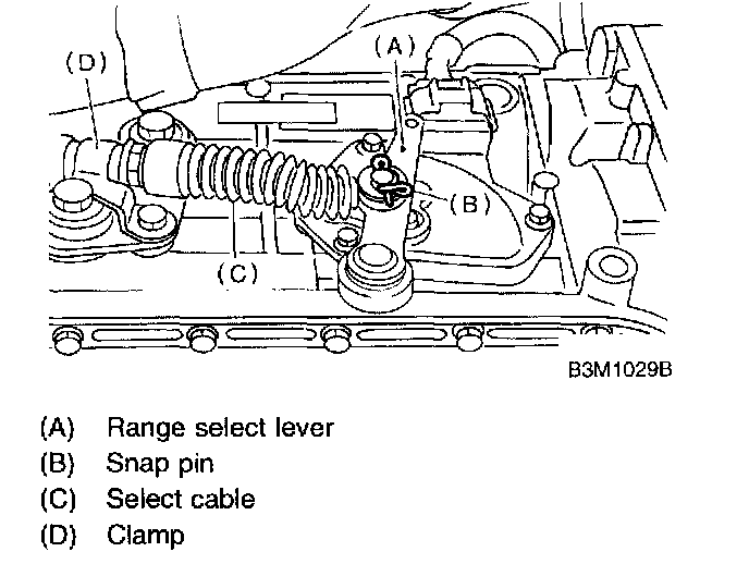 1. Remove snap pin from range select lever.
