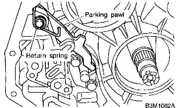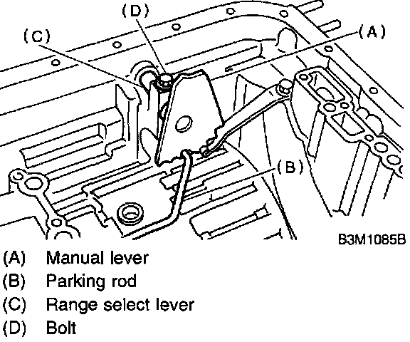 31. Remove bolts securing select lever, then remove select lever, manual lever and parking rod.