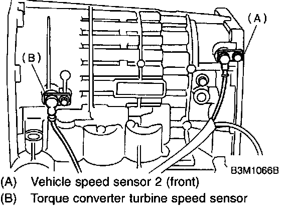 9. Remove vehicle speed sensor 2 (front) and torque converter turbine speed sensor.