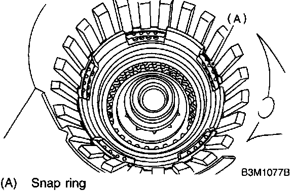 27. Turning the case upside down, take out the one-way clutch inner race, retainer and wave spring