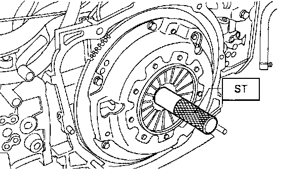 3. Insert ST into the clutch disc and install them on the flywheel by inserting the ST end into the pilot bearing.
