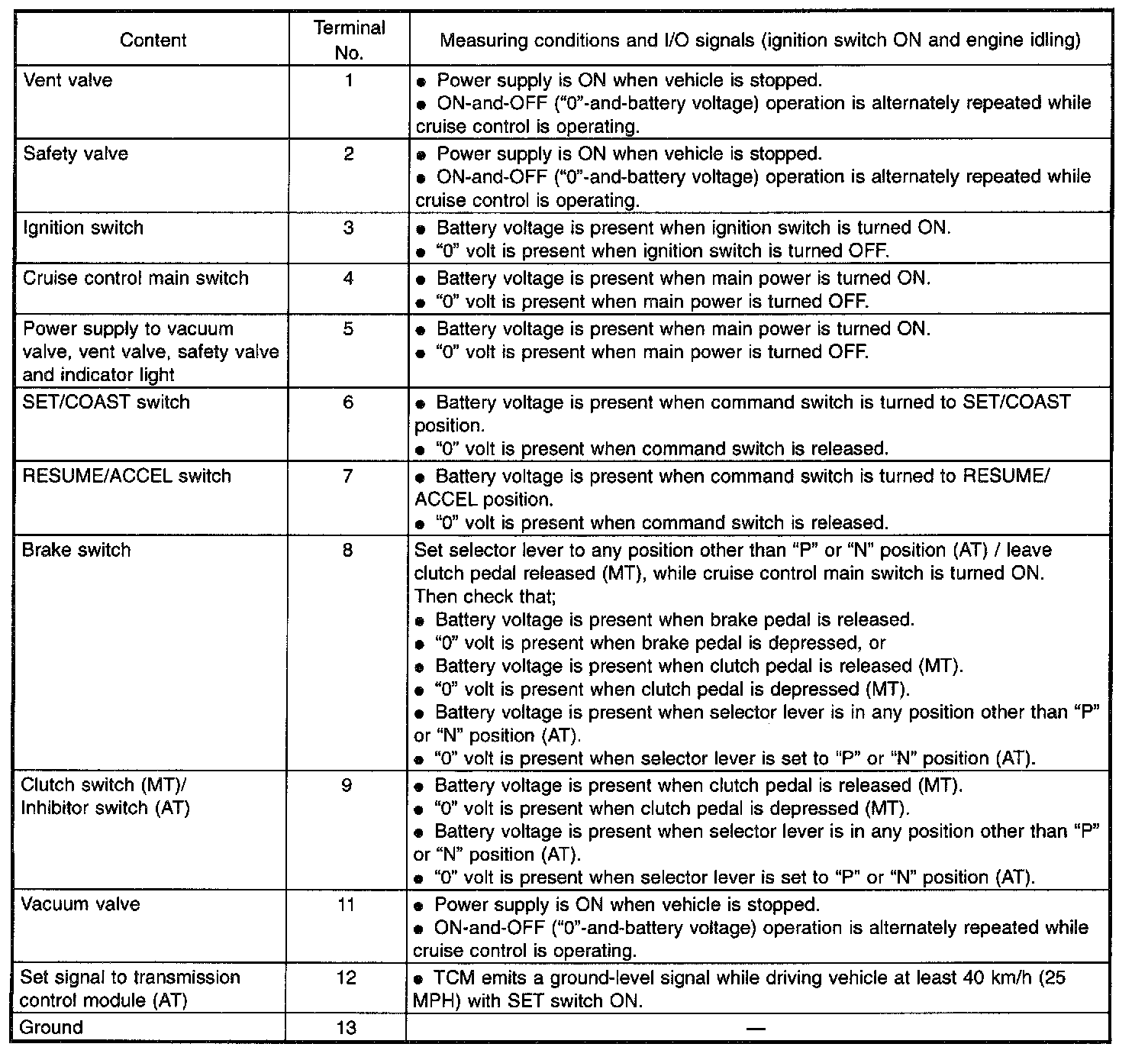 Electrical Specification (Terminal No. 1-13):