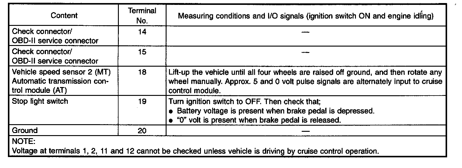 Electrical Specification (Terminal No. 14-20):