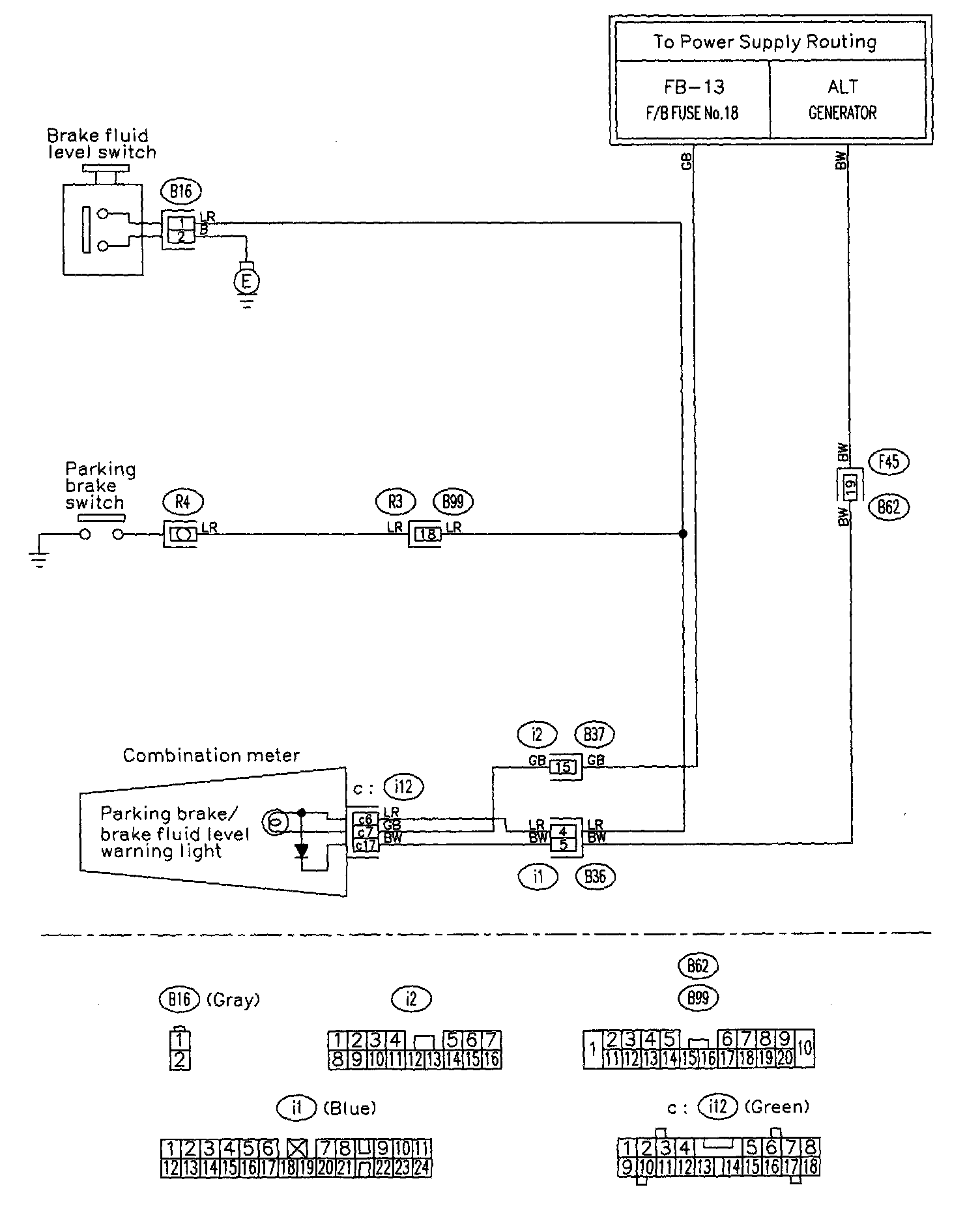 Parking Brake And Brake Fluid Level Warning System Circuit: