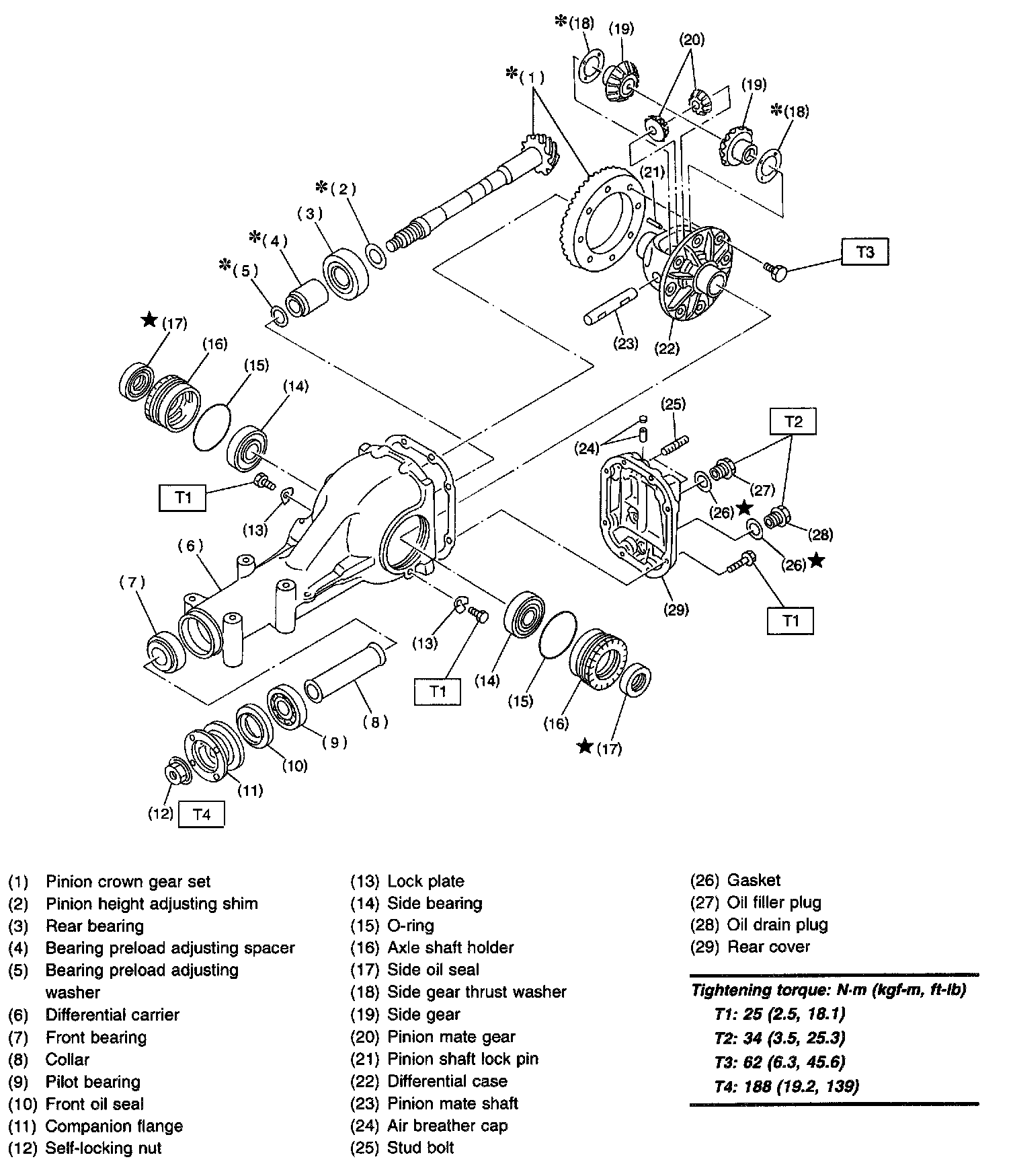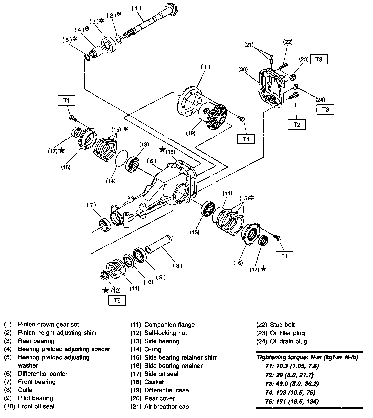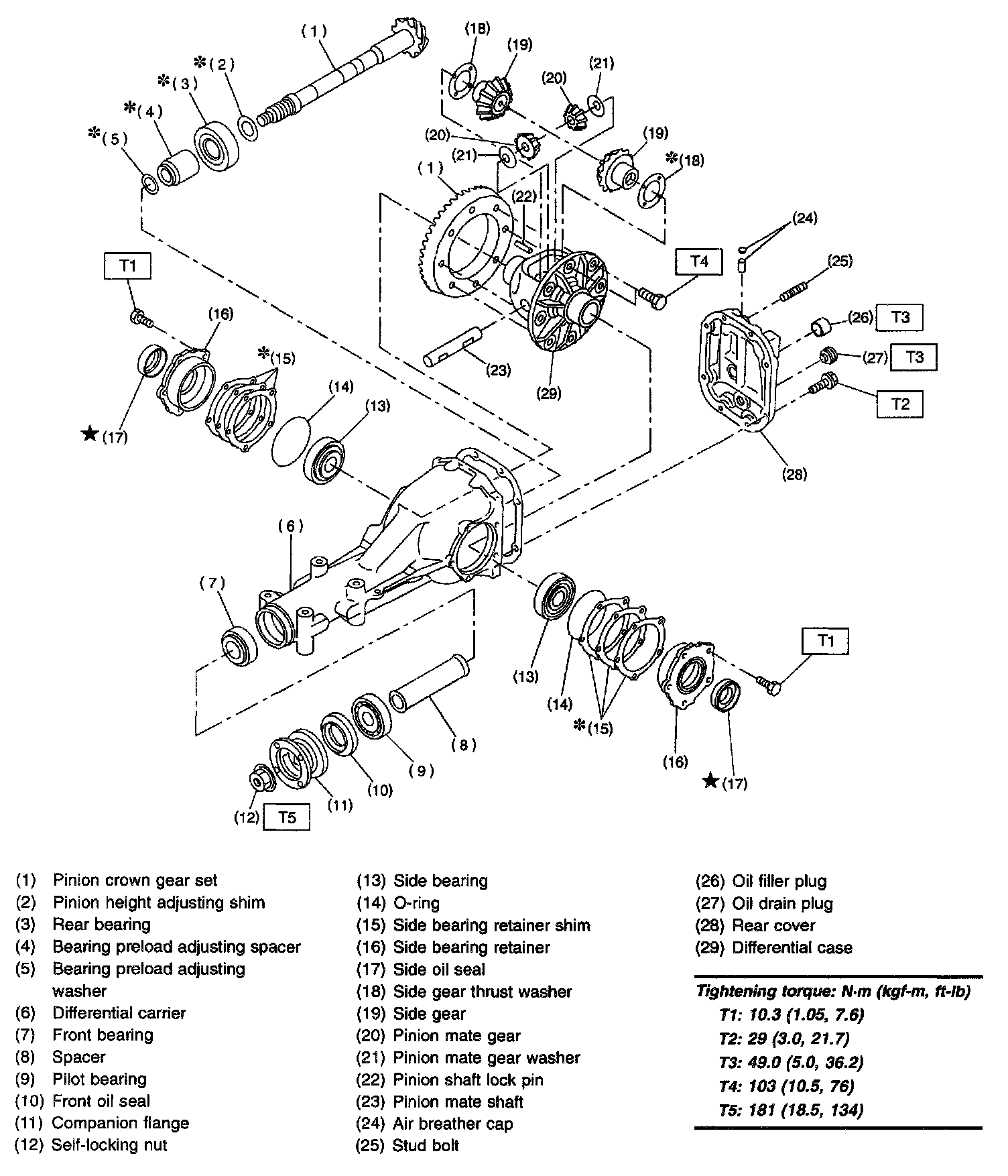 1. REAR DIFFERENTIAL FOR T-TYPE WITHOUT LSD