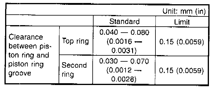 CAUTION: Before measuring the clearance, clean the piston ring groove and piston ring.