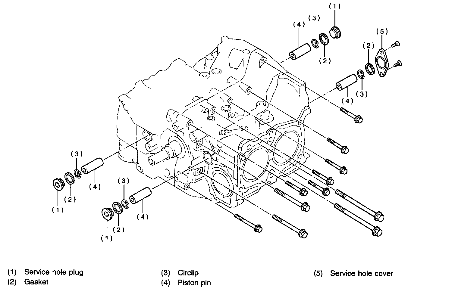 23. Rotate crankshaft to bring #1 and #2 pistons to bottom dead center position, then remove piston circlip through service hole of #1 and #2 cylinders.