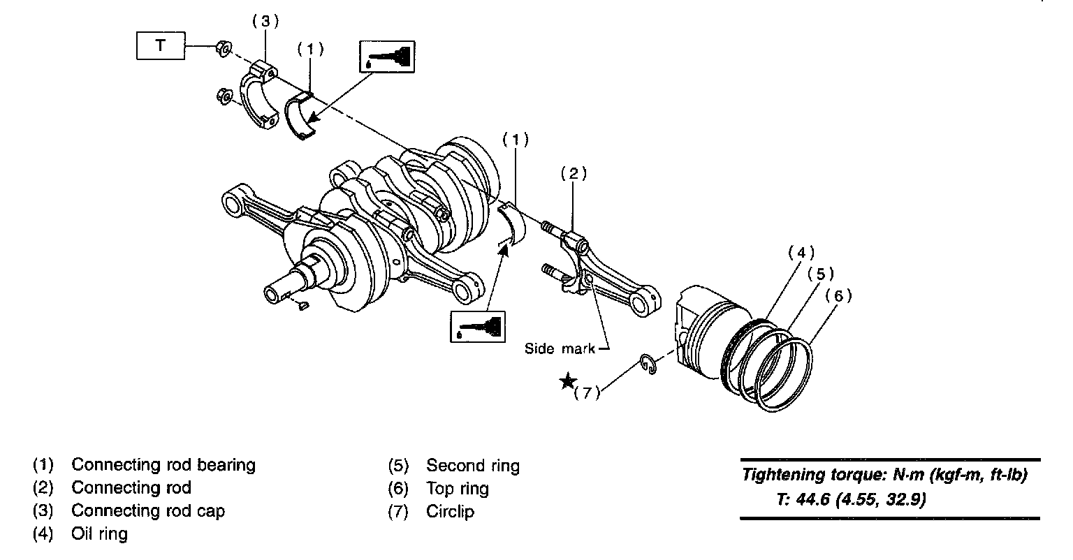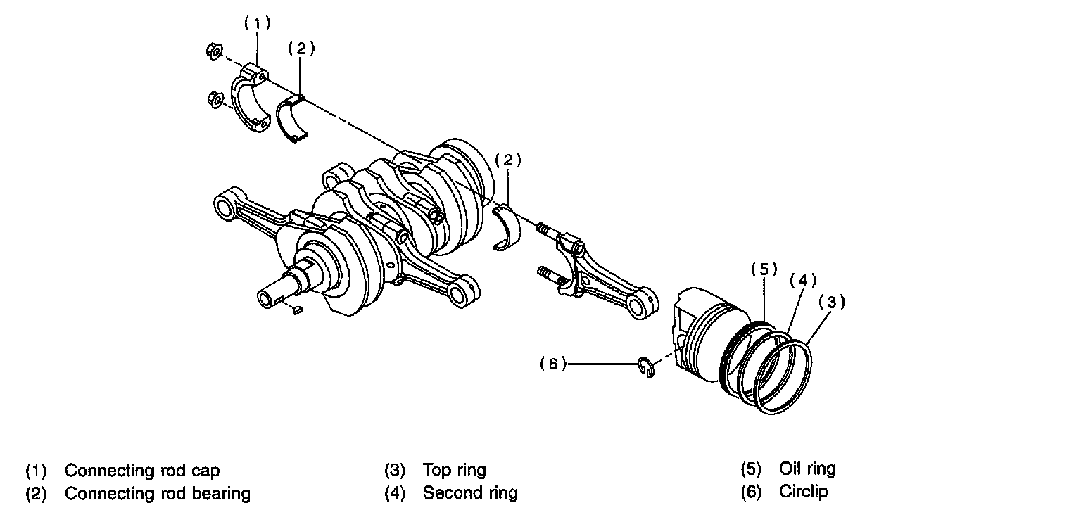 ^ The oil ring is a combined ring consisting of two rails and a spacer in between. When installing, be careful to assemble correctly.
