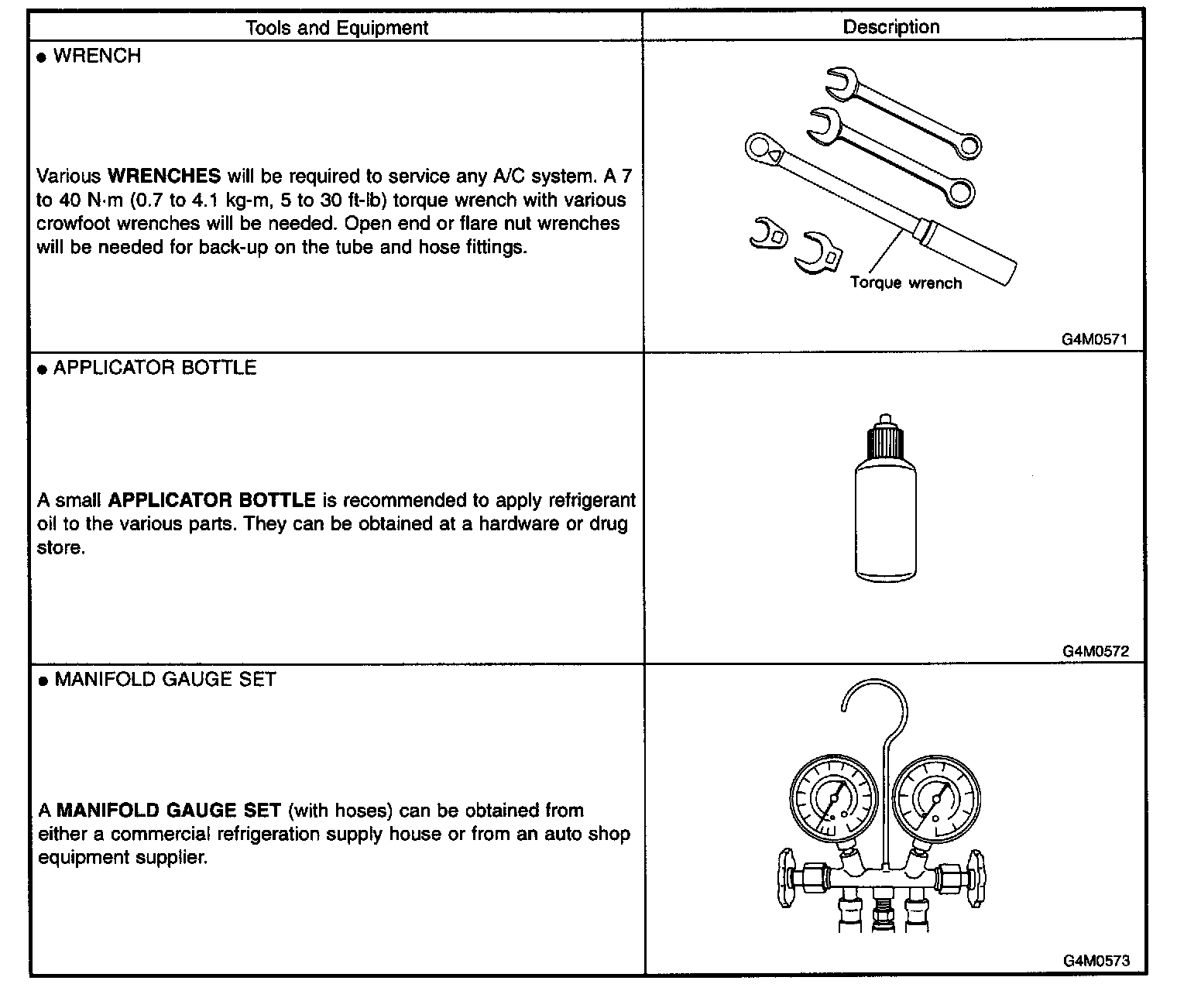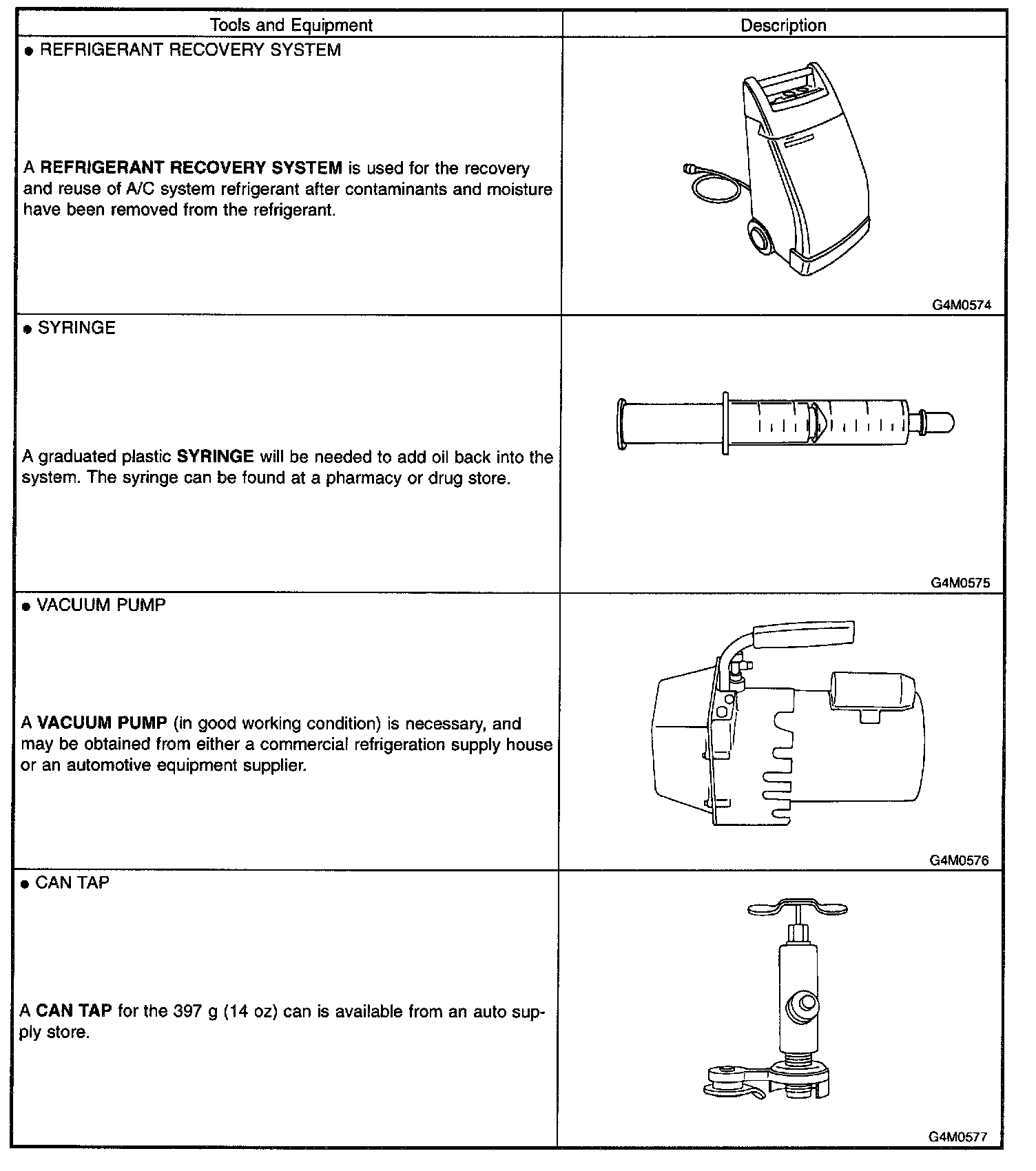 This section provides information about the tools and equipment that will be necessary to properly service the A/C system.