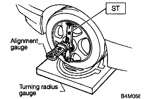2. Set ST into the center of the wheel, and then install the wheel alignment gauge.