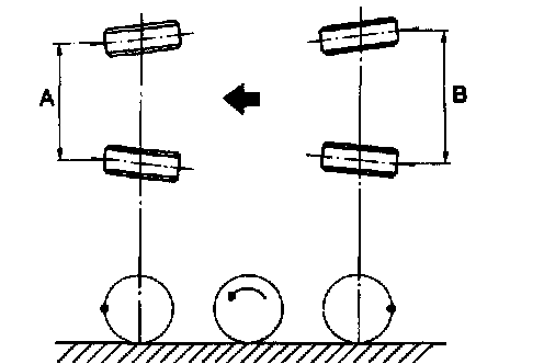 2. Mark rear sides of left and right tires at height corresponding to center of spindles and measure distance "B" between marks.
