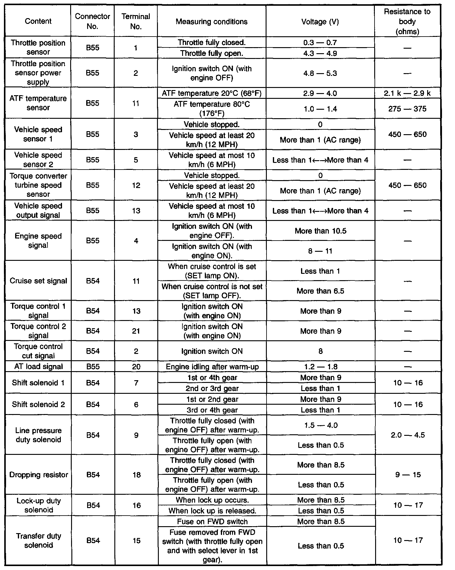 Pinout Values and Diagnostic Parameters
