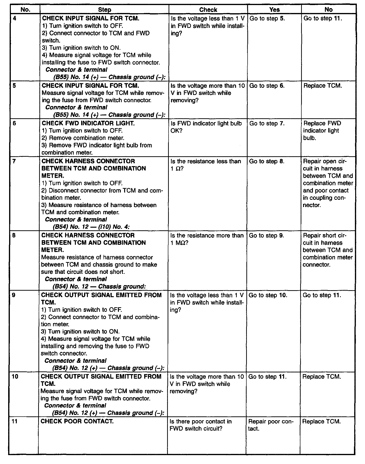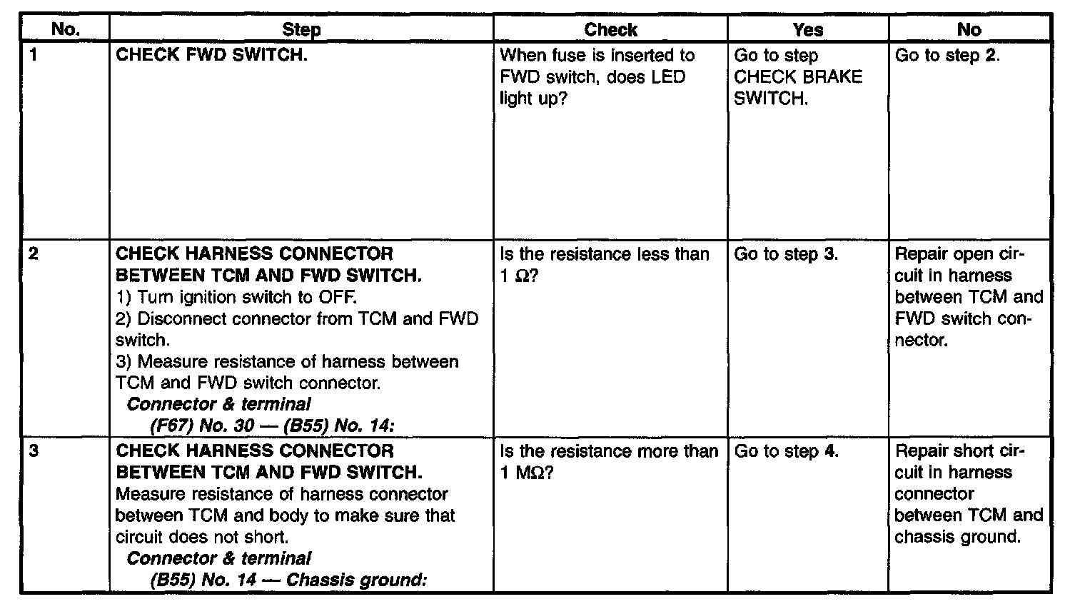 B: CHECK FWD SWITCH.
