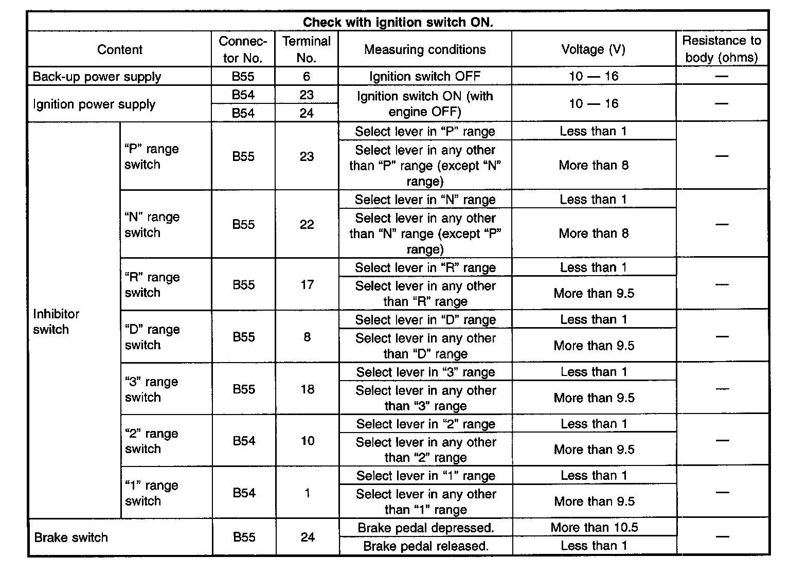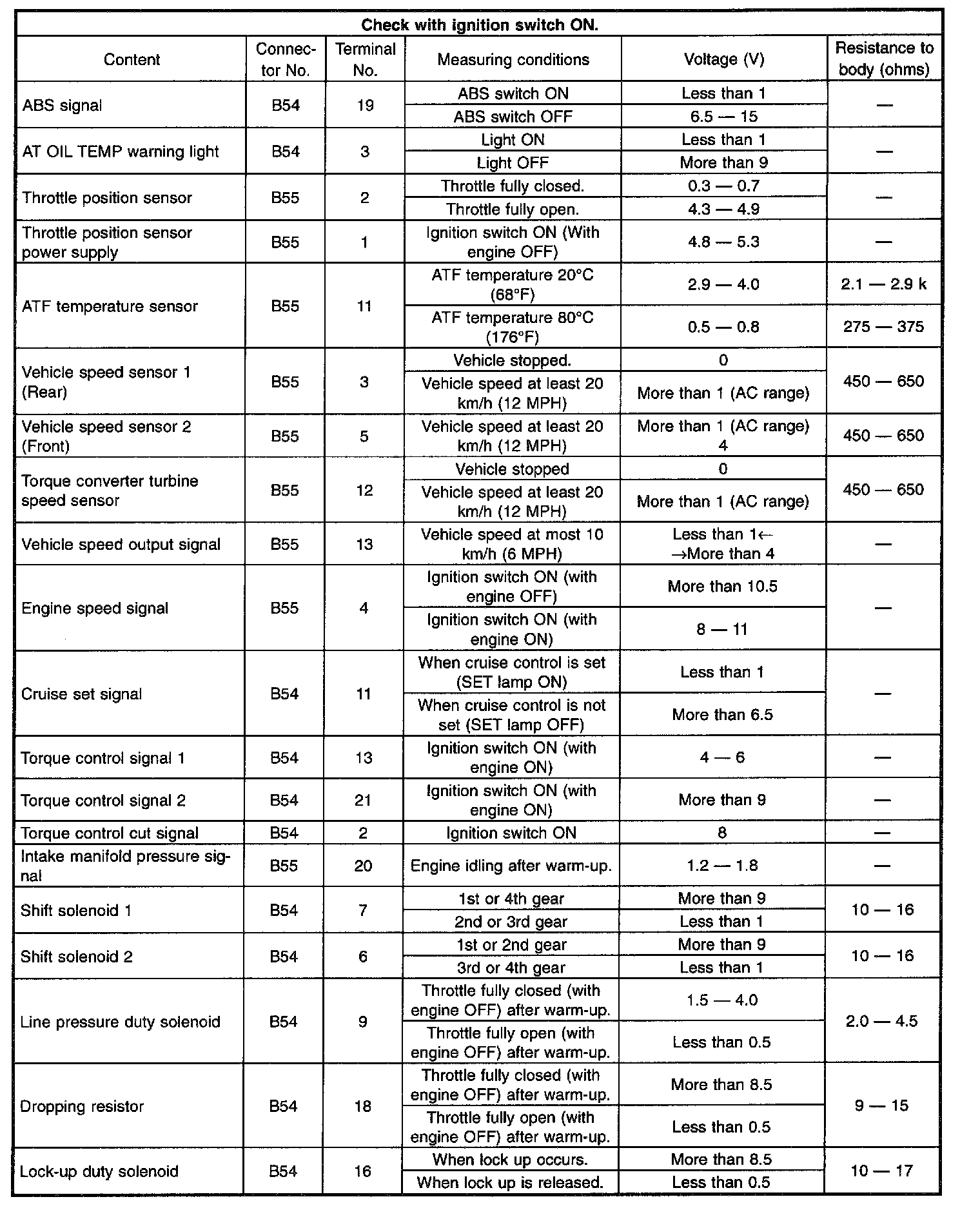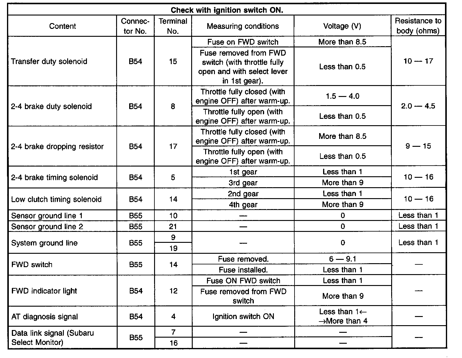 Pinout Values and Diagnostic Parameters
