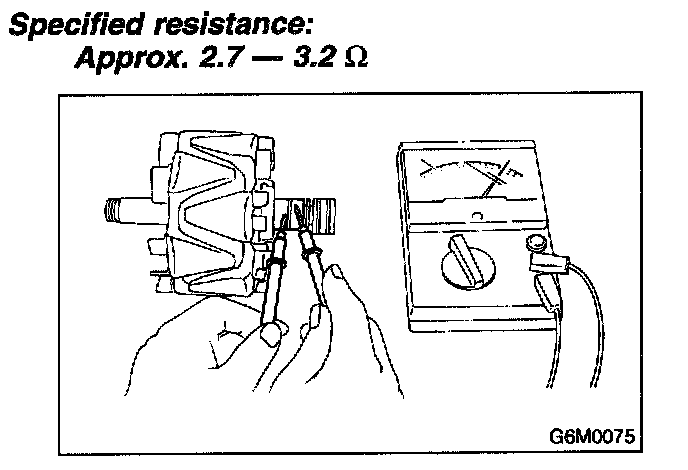 Check continuity between slip ring and rotor core or shaft. If continuity exists, the rotor coil is short-circuited, and so replace rotor assembly.