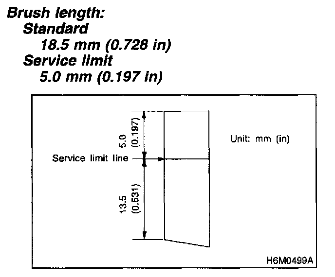 1. Measure the length of each brush. If wear exceeds the service limit, replace the brush. Each brush has the service limit mark on it.
