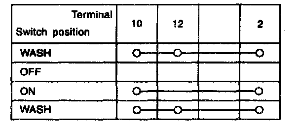 Set wiper switch to each position and check continuity between terminals.