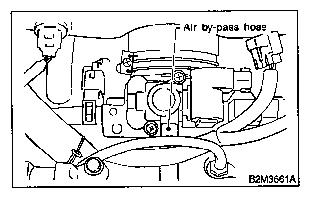 3. Disconnect air by-pass hose from idle air control solenoid valve.