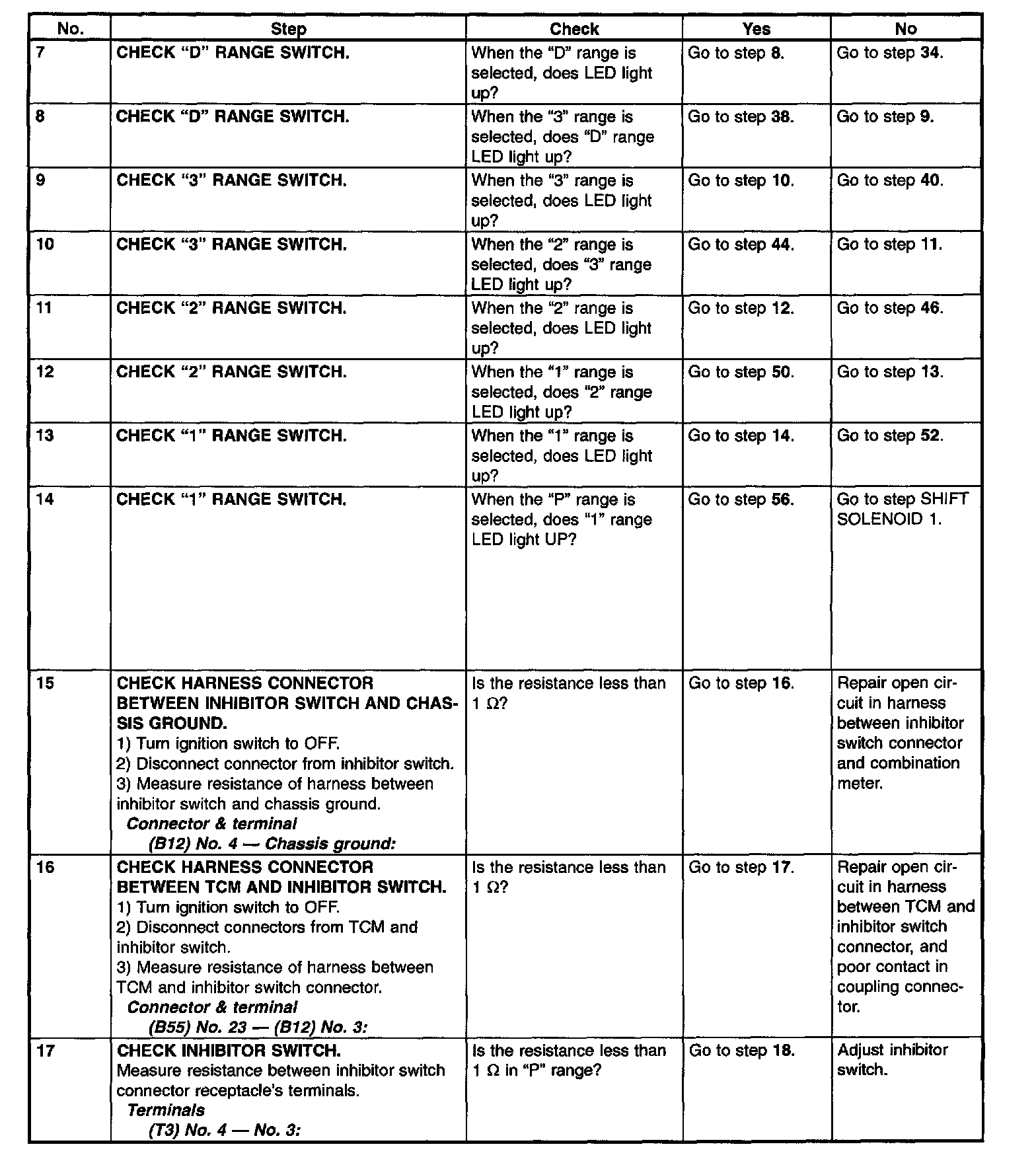 F: CHECK INHIBITOR SWITCH.DIAGNOSIS: Input signal circuit of inhibitor switch is open or shorted.