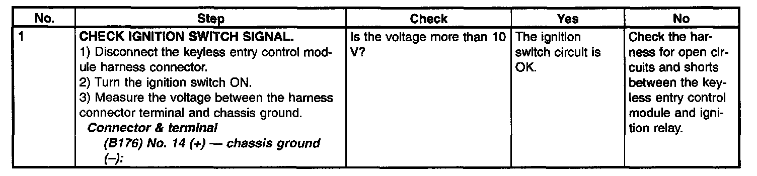 Check Ignition Switch Circuit: