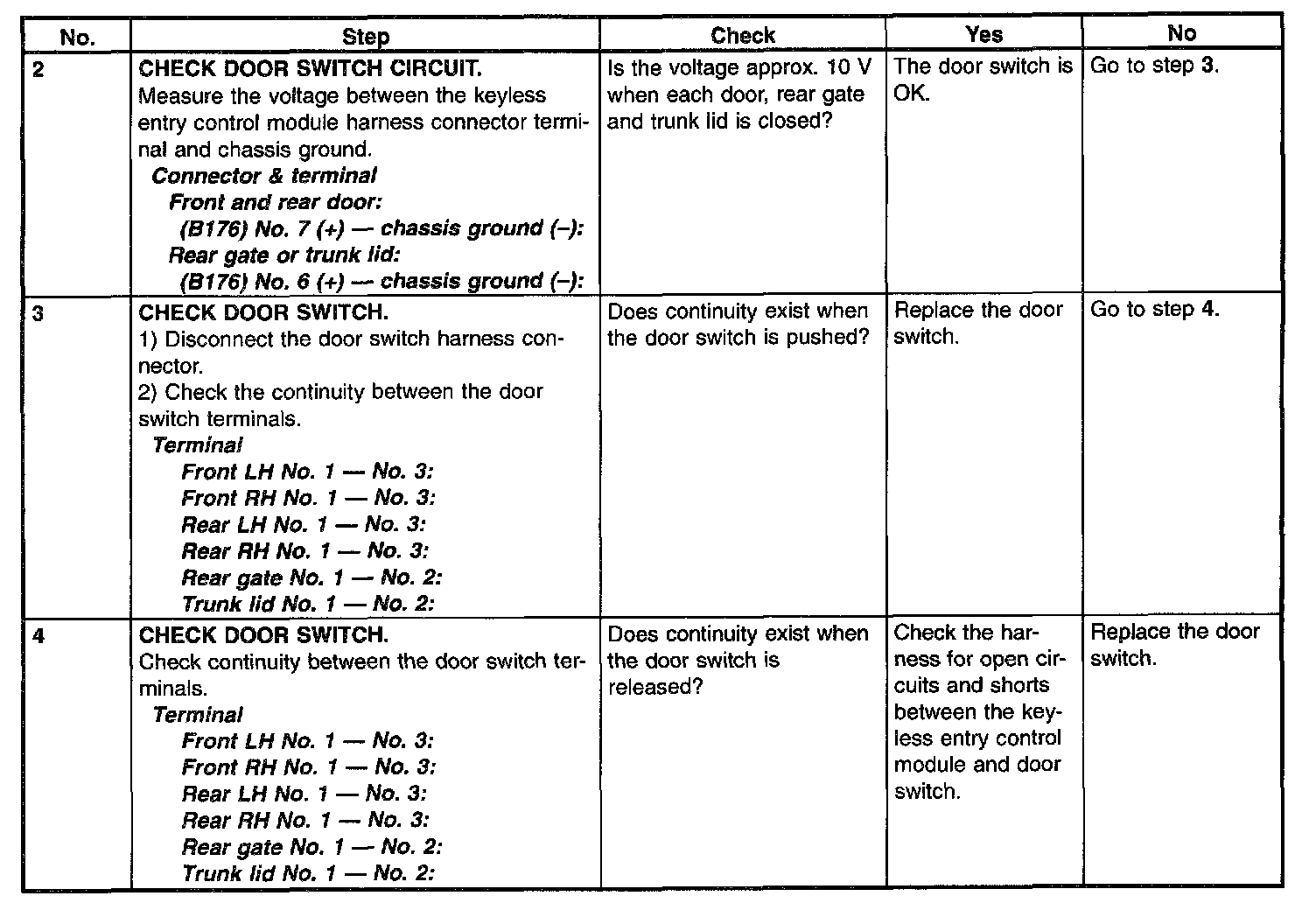 Check Door Switch (Step 2 - 4):