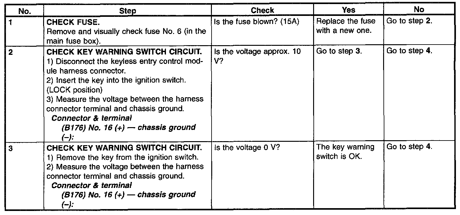 Check Key Warning Switch (Step 1 - 3):