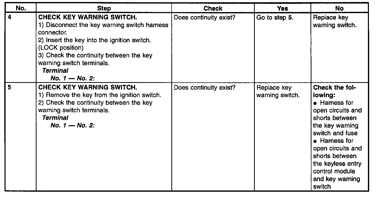 Check Key Warning Switch (Step 4 - 5):