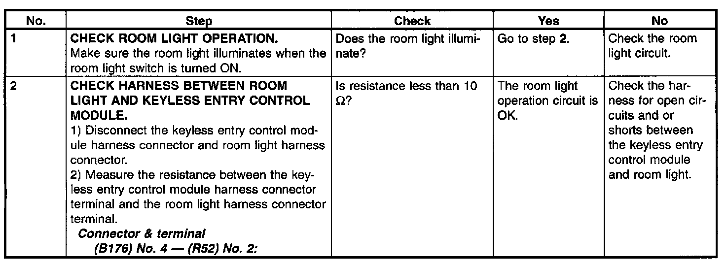 Check Room Light Operation: