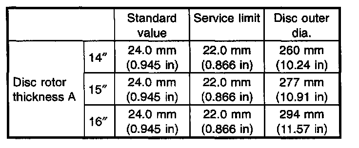 Disc rotor runout limit: 0.075 mm (0.0030 inch)