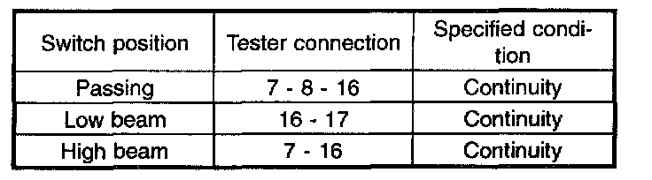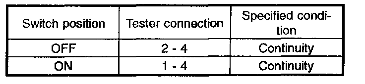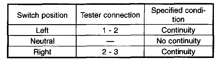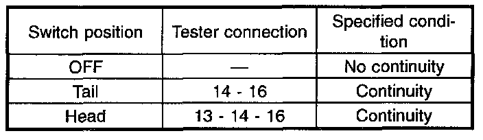 Move combination switch to respective positions and check continuity between terminals.