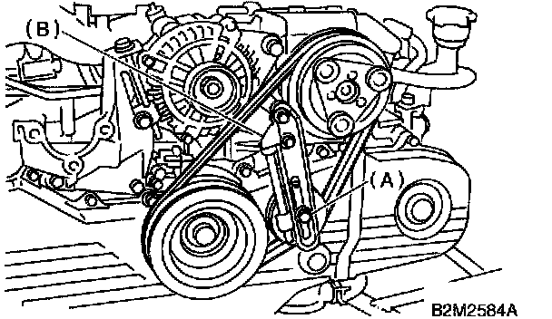 1. Install a new belt, and tighten the slider bolt so as to obtain the specified belt tension.