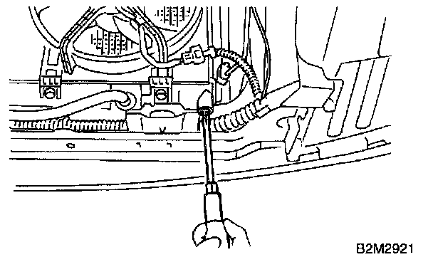 NOTE: Remove radiator cap so that engine coolant will drain faster.
