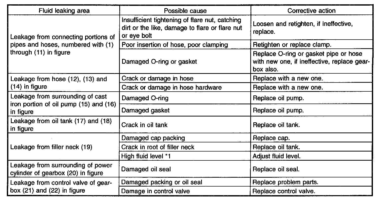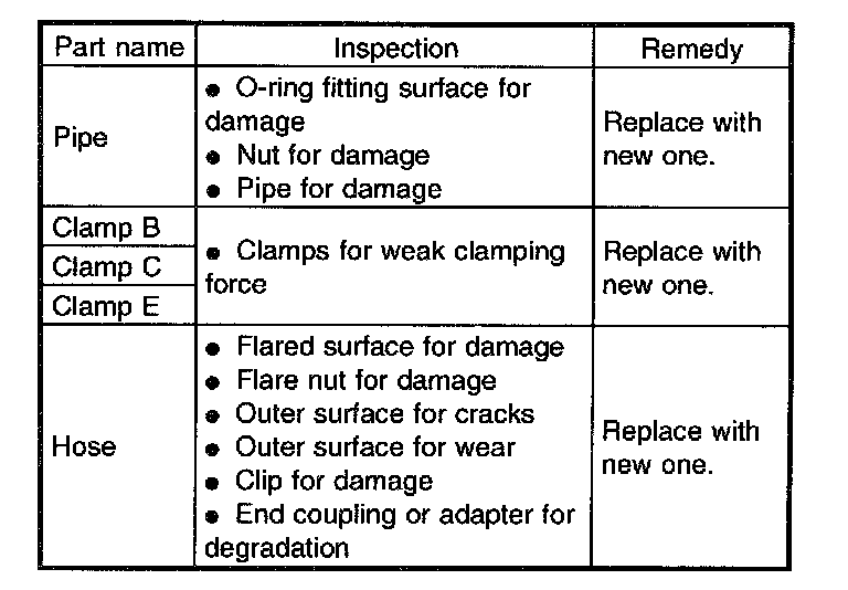 CAUTION: It is likely that although one judges fluid leakage, there is actually no leakage. This is because the fluid spilt during the last maintenance was not completely wiped off. Be sure to wipe off spilt fluid thoroughly after maintenance.