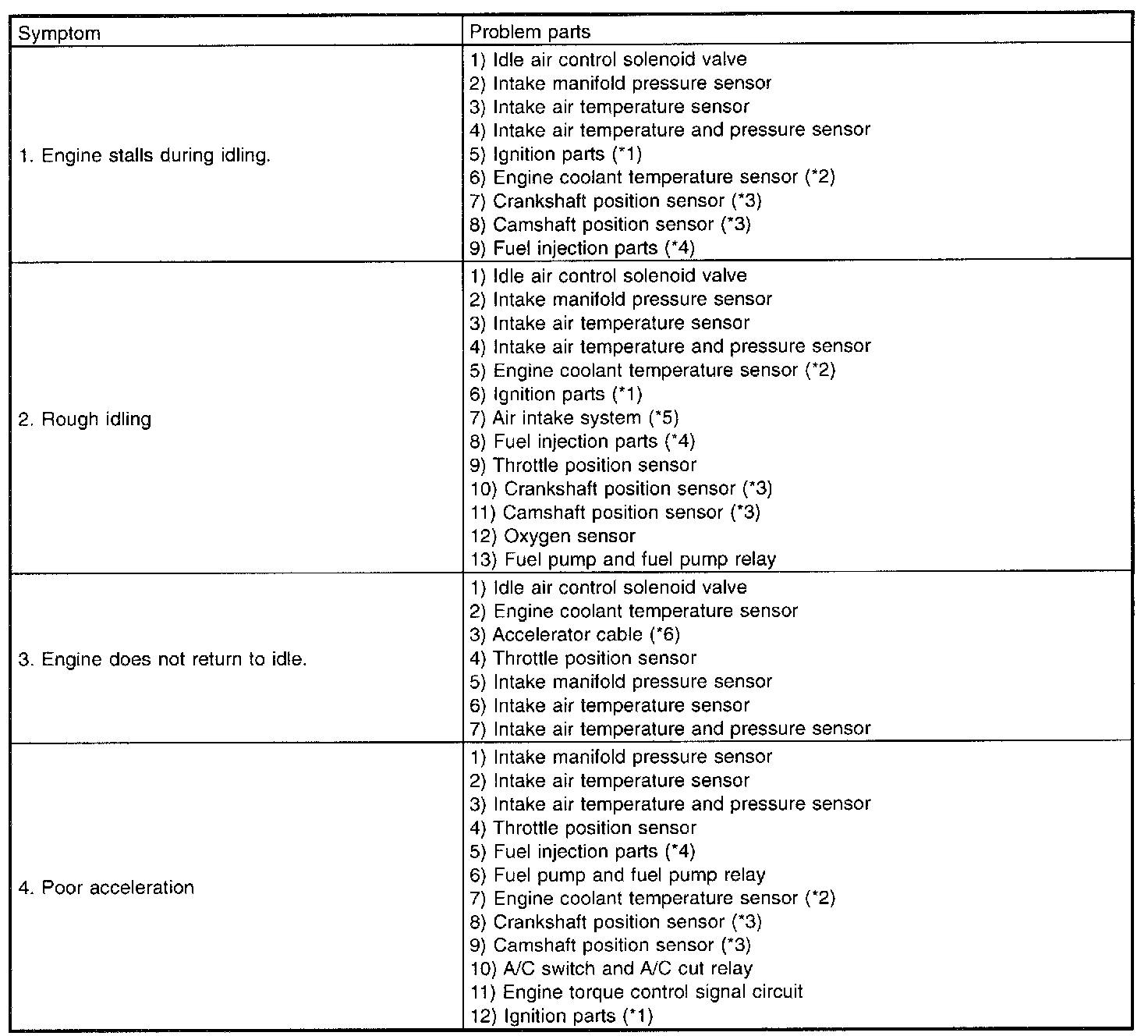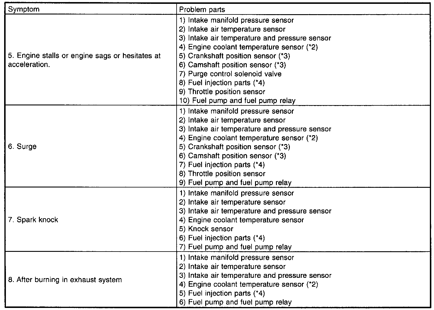 ENGINENOTE: Malfunction of parts other than those listed is also possible.