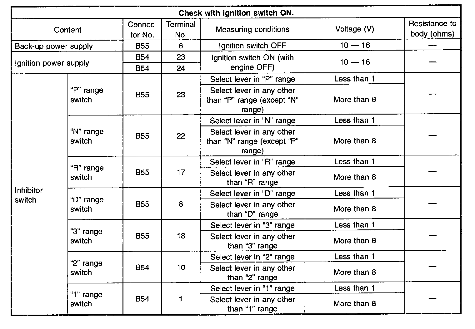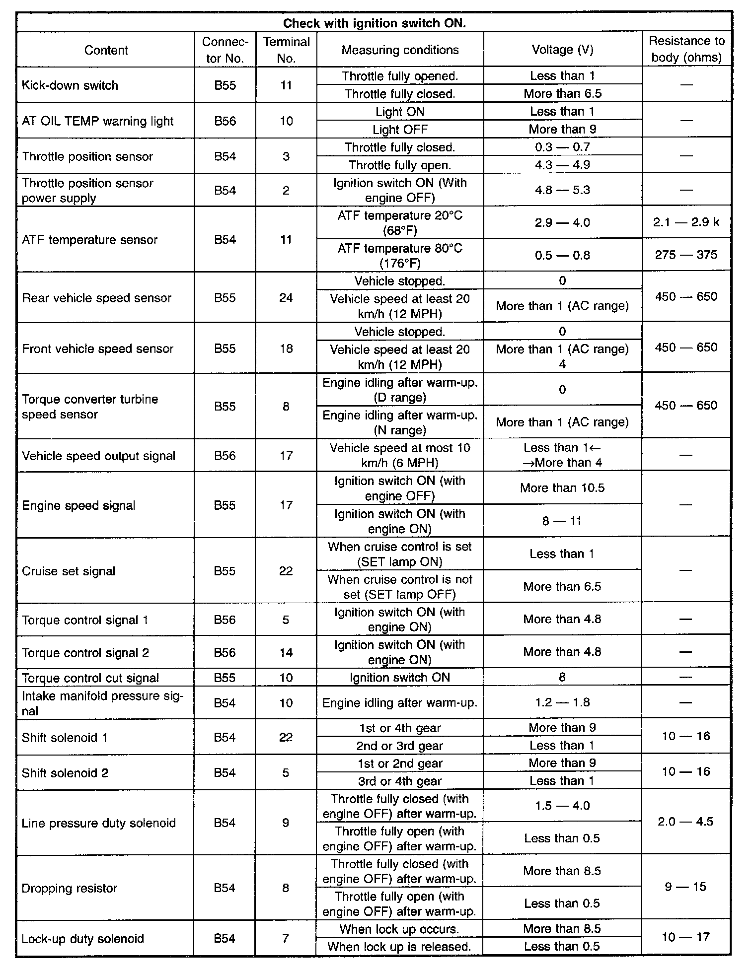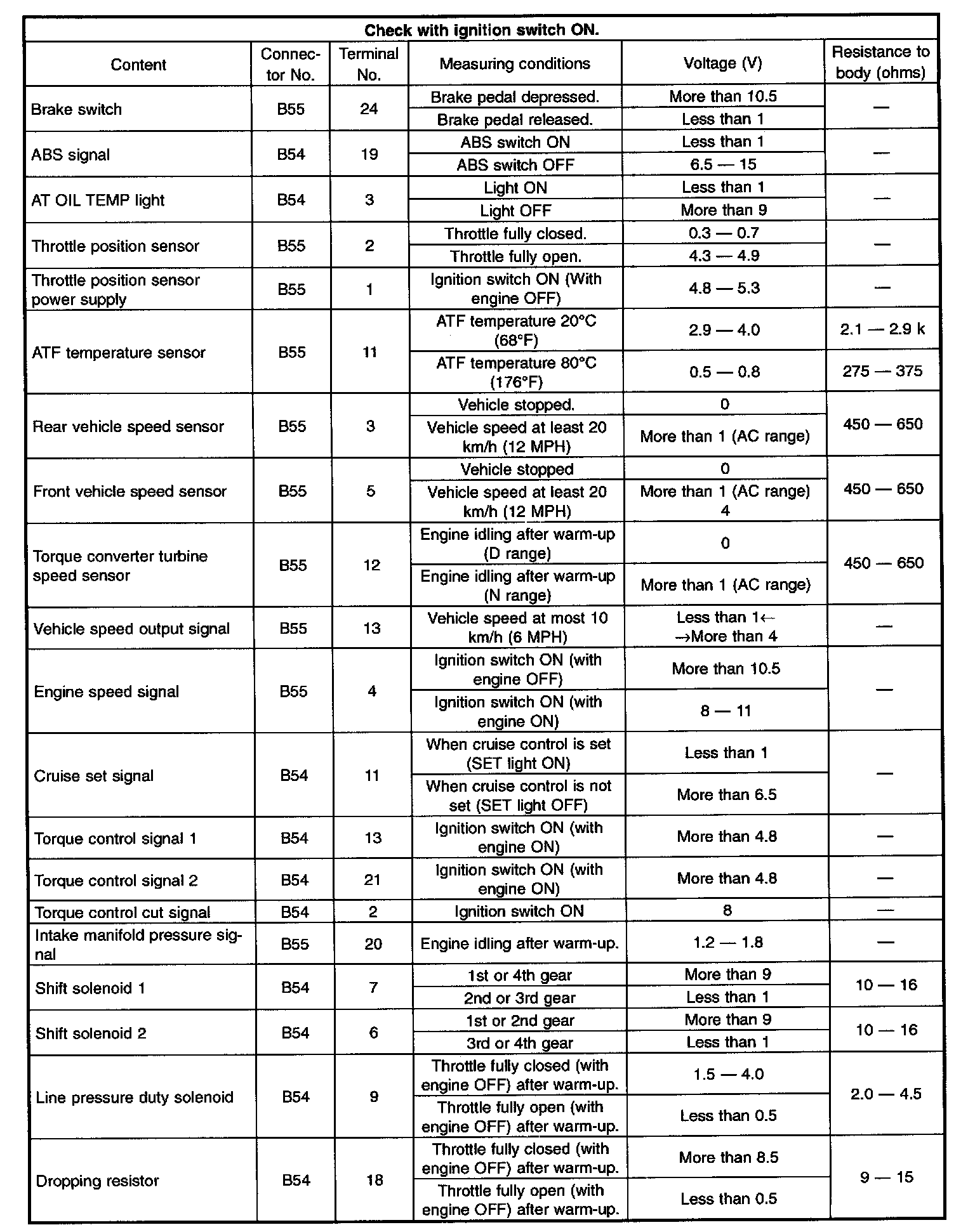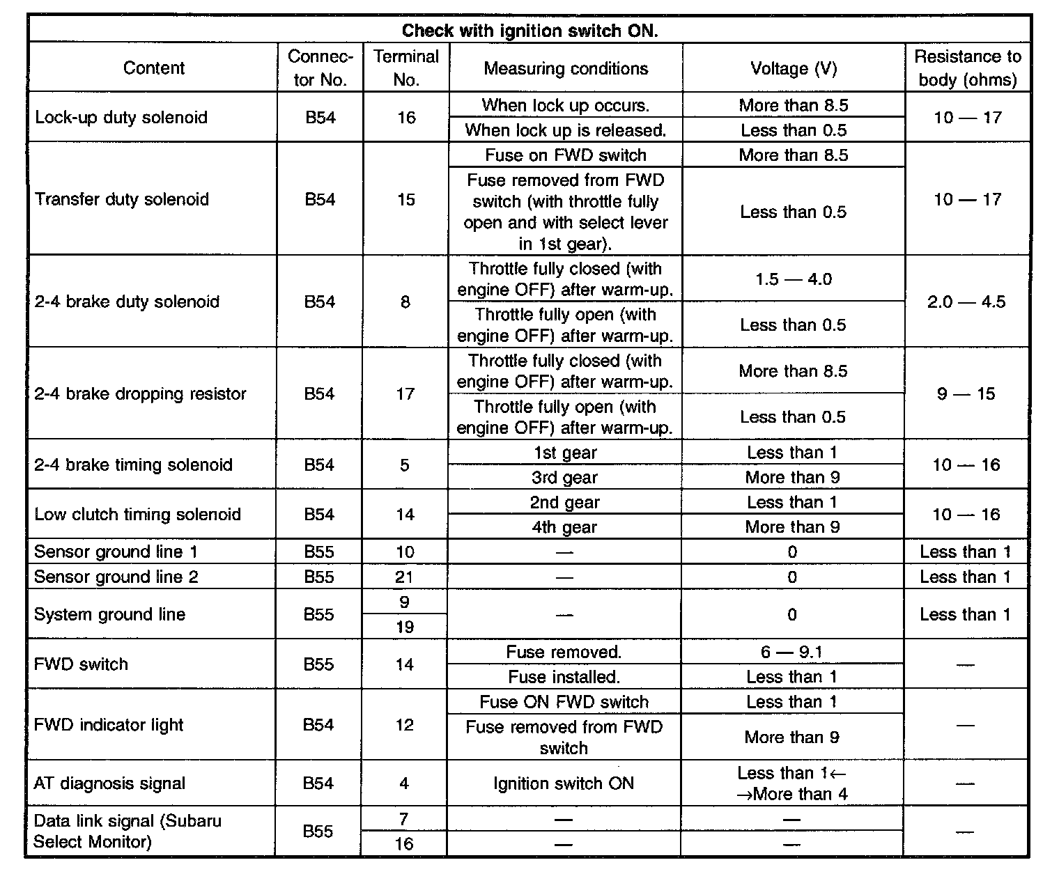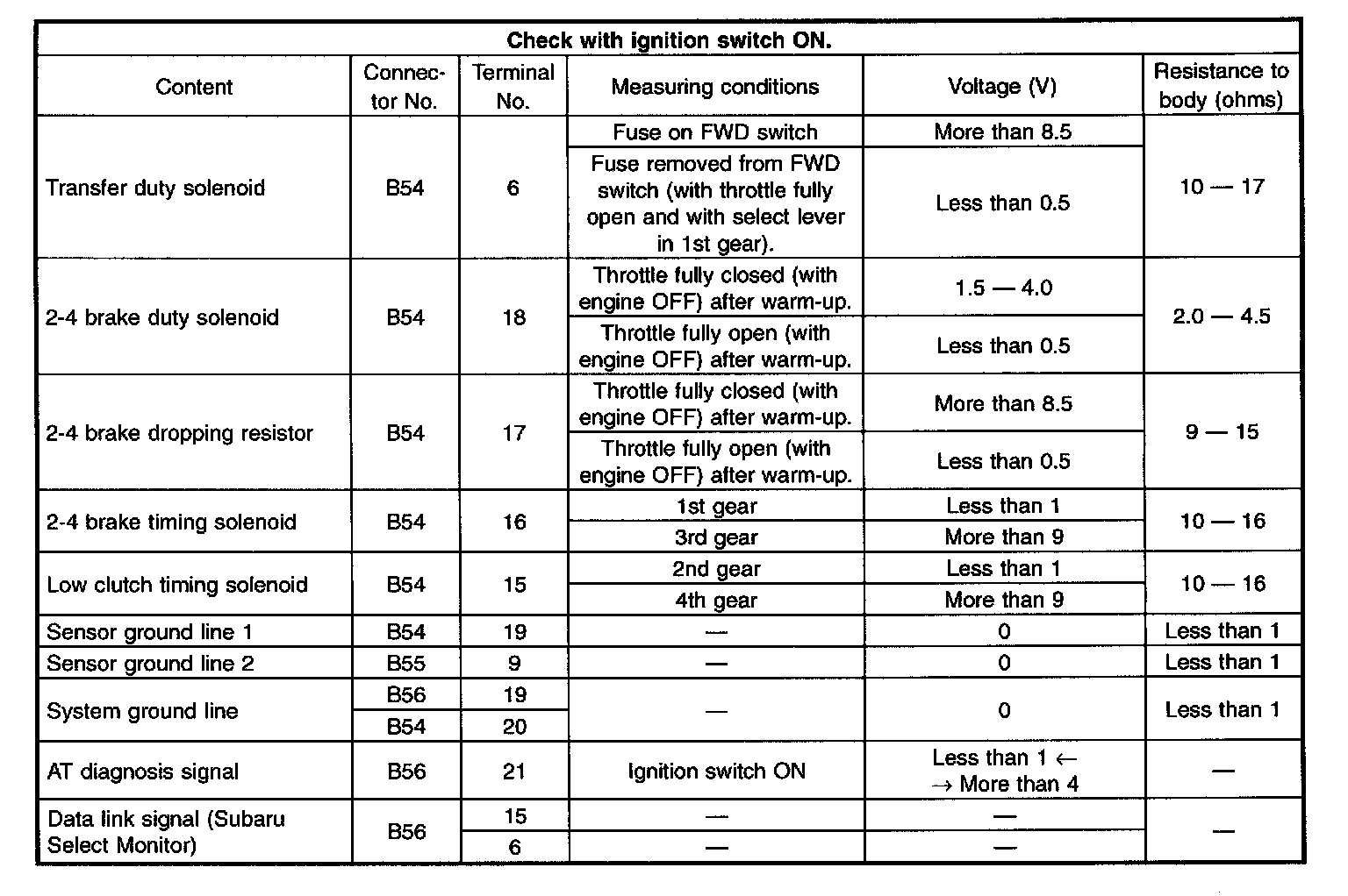 Pinout Values and Diagnostic Parameters