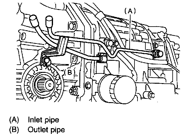10. Remove the oil cooler inlet and outlet pipes.