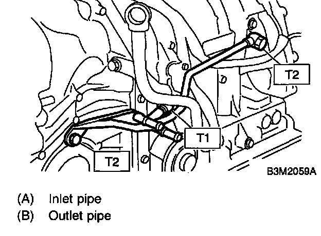 1. Install the oil cooler outlet and inlet pipes.