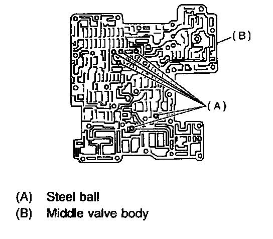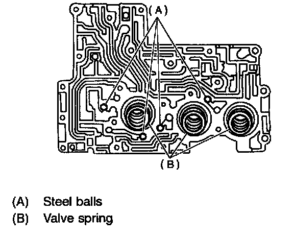1) Install accumulator pistons, valve springs and steel balls to upper valve body.