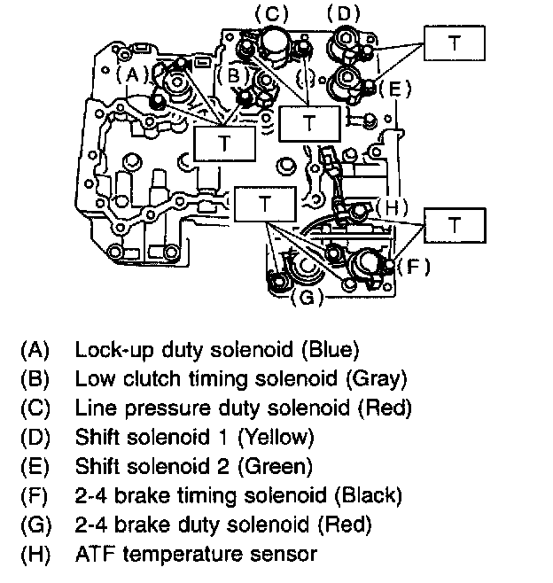 2) Remove the duty solenoids, solenoids and sensor from the lower valve body.