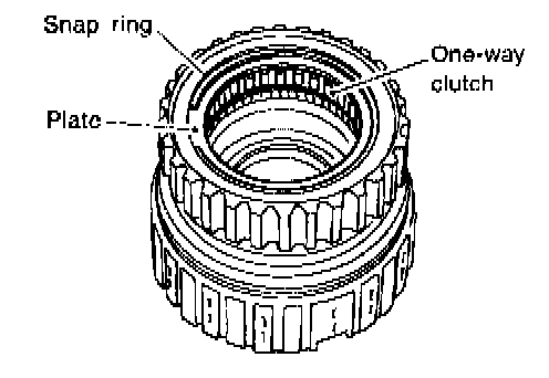 2) Install the one-way clutch, one-way clutch inner race and plate, and secure with the snap ring.