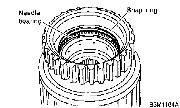 1) Install the needle bearing, and secure with the snap ring.