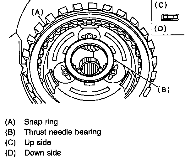 14) Install snap ring and thrust needle bearing.