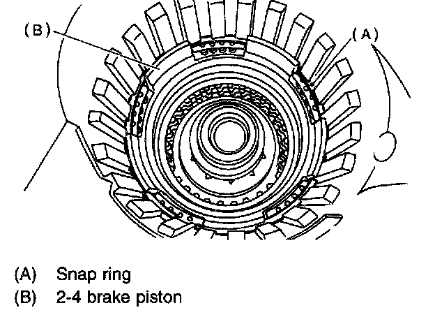 12) After all 2-4 brake component parts have been installed, blow in air intermittently and confirm the operation of the brake.