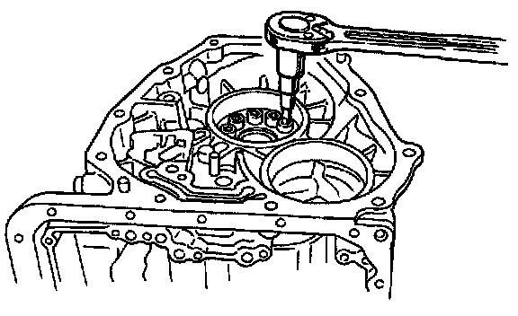 27) Turn the transmission case upside down, and then take out the socket bolts while holding the one-way clutch inner race with hand.