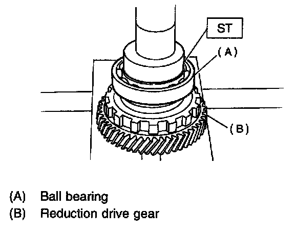 3) Press-fit the ball bearing to reduction drive shaft.