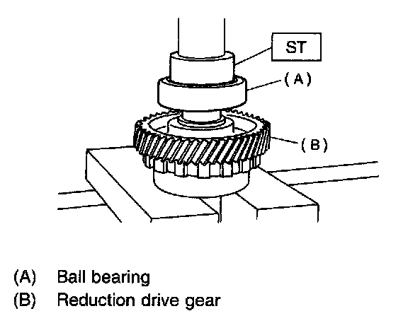 1) Press-fit the ball bearing to the reduction drive gear.
