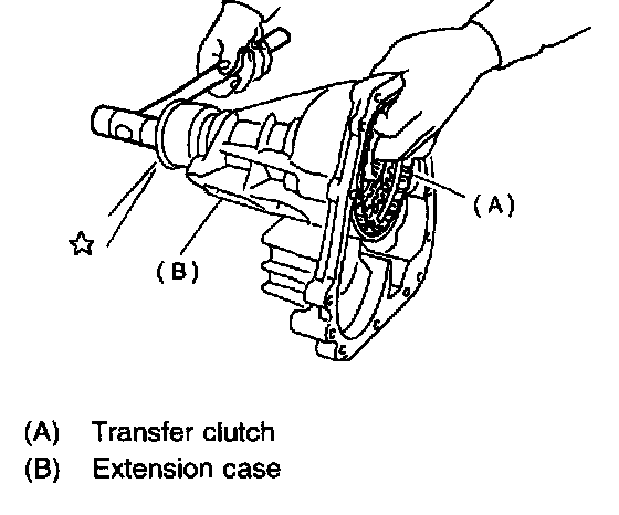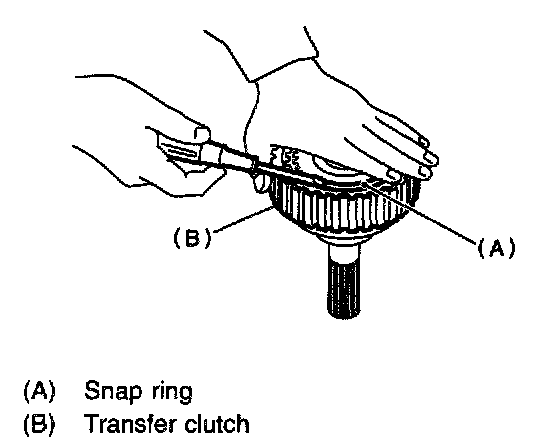 3) Take out the transfer clutch by lightly tapping the end of the rear drive shaft.