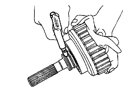 3) Remove the snap ring, and take out the pressure plate, drive plates, and driven plates.